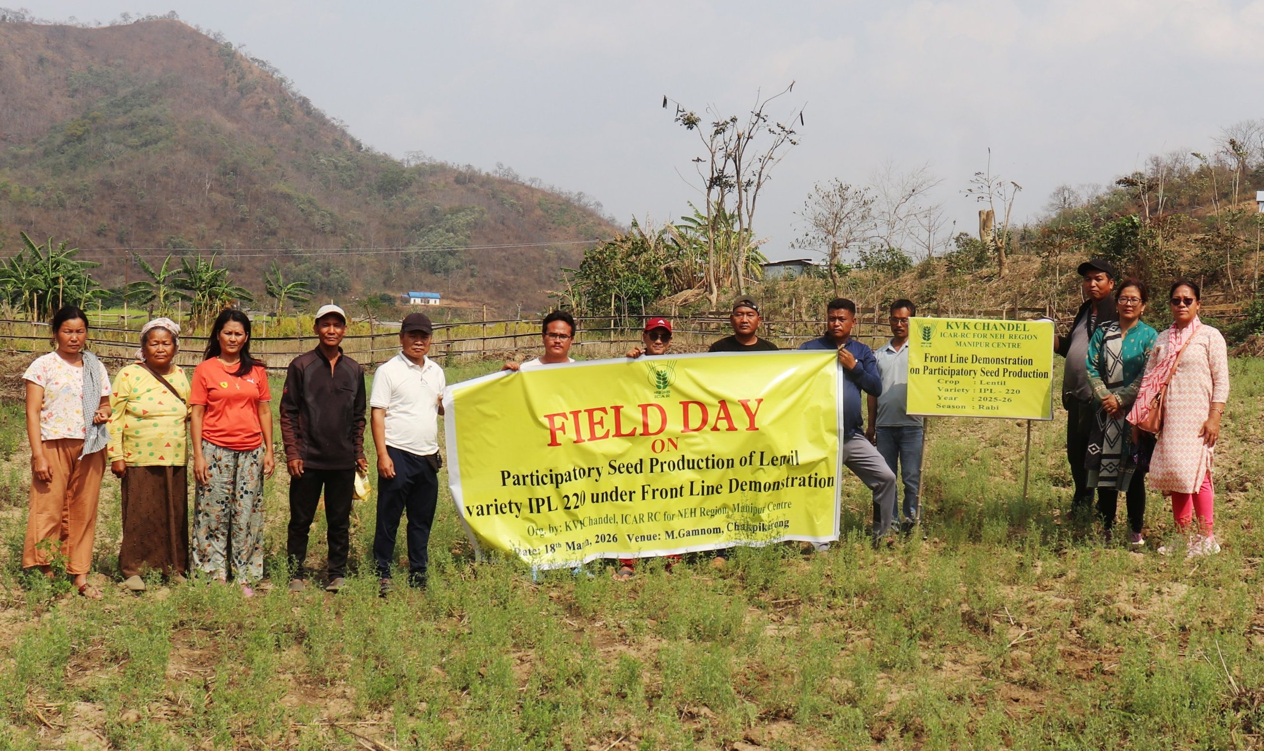 Chandel, 18/03/2026: In a significant move toward enhancing nutritional security and boosting farm income in the region, ICAR-Krishi Vigyan Kendra (KVK) Chandel organized a specialized “Field Day” today at M Gamnom Village, situated within the Sajiktampak, Chakpikarong block, Chandel District. The event focused on the performance and benefits of the IPL 220 lentil variety, drawing 20 progressive farmers from the village and its surrounding areas.